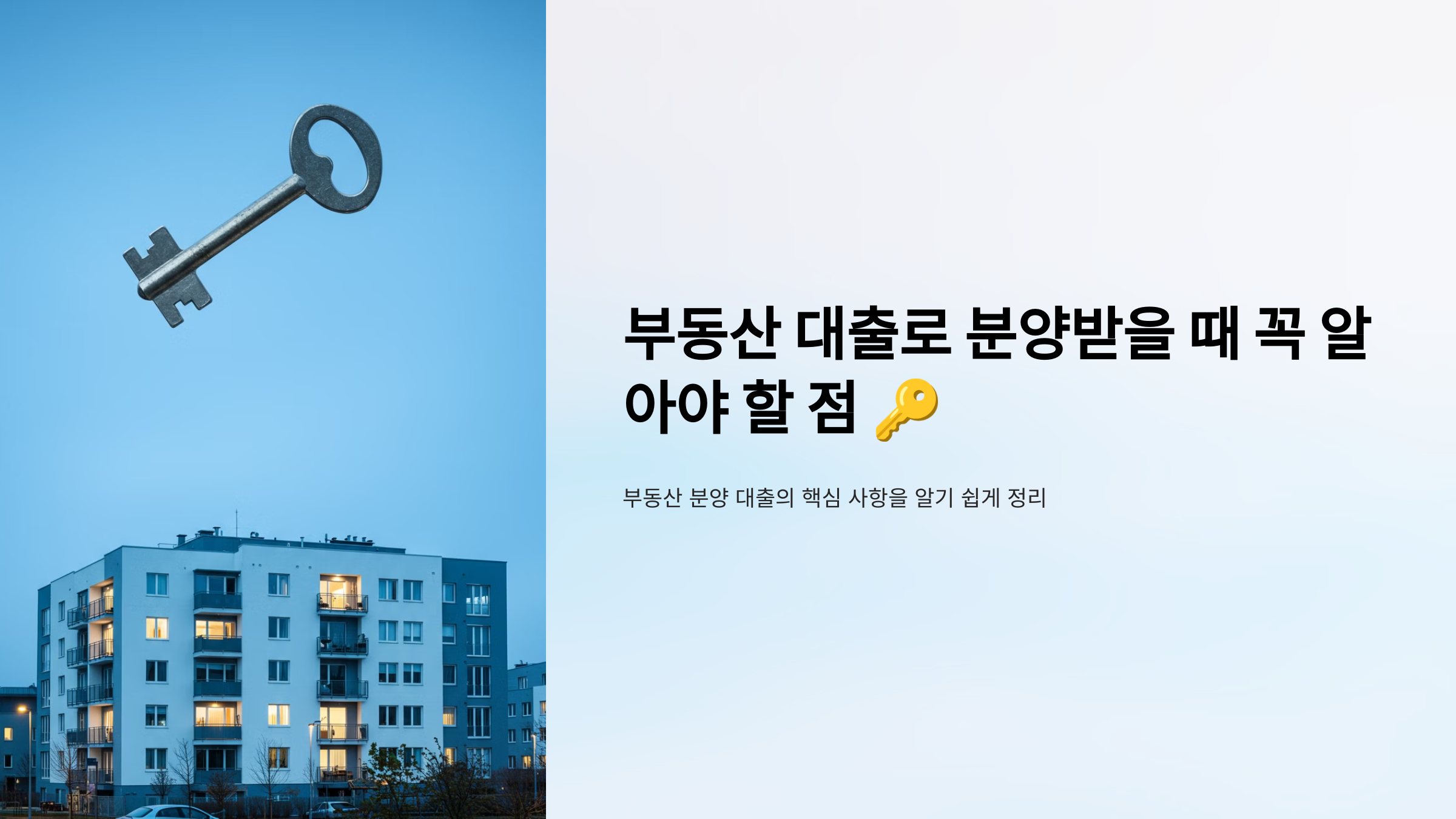 부동산 분양을 받을 때 대출은 필수적인 고려 사항이죠. 하지만 복잡한 대출 조건과 다양한 금융 상품 속에서 현명한 결정을 내리기란 쉽지 않습니다. 오늘은 부동산 대출로 분양받을 때 반드시 알아야 할 사항들을 알기 쉽게 정리해 드리겠습니다. 😊