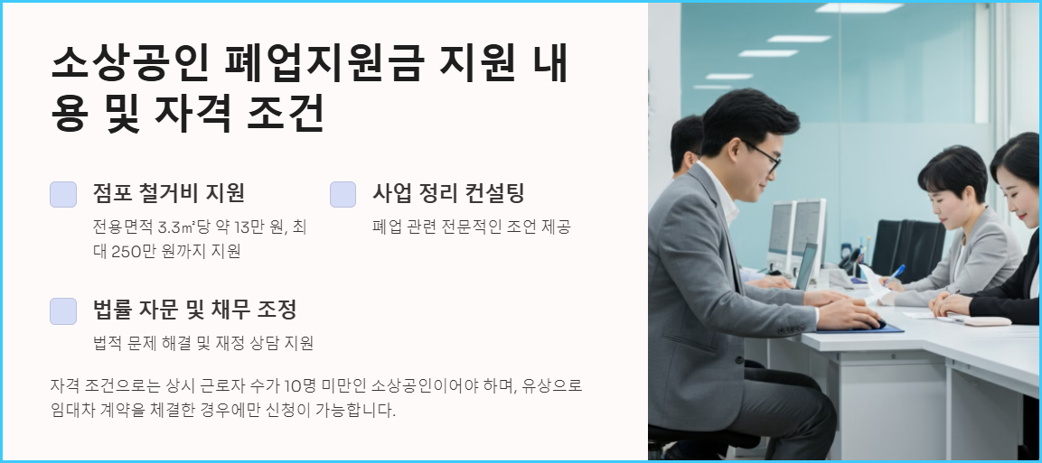 소상공인 폐업지원금의 주요 지원 내용은 다음과 같습니다: