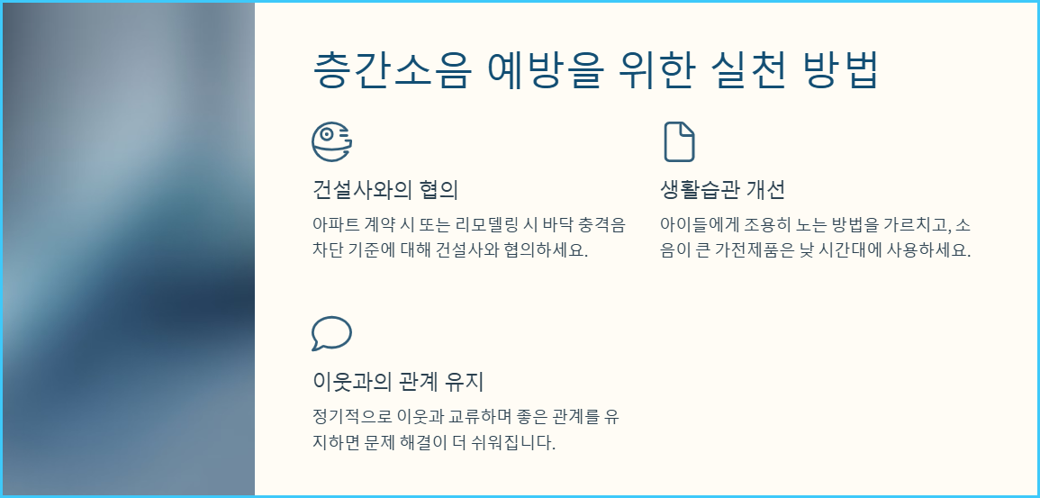층간소음과 관련된 법규와 기준을 이해하는 것도 중요합니다:
