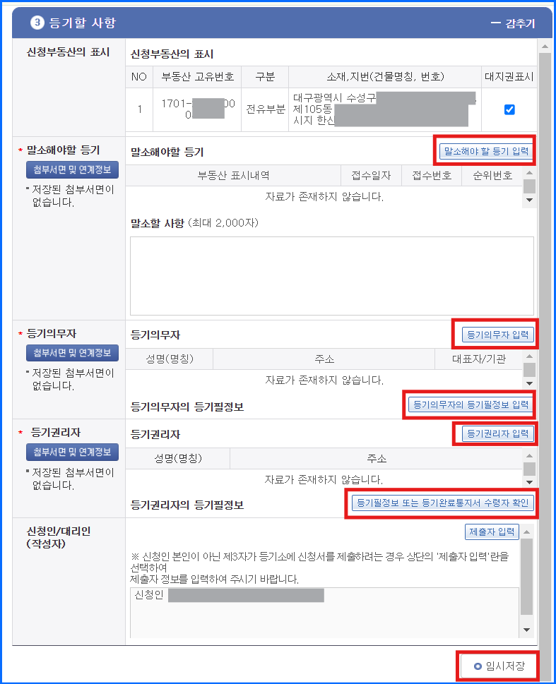 4. 등기할 사항 입력
