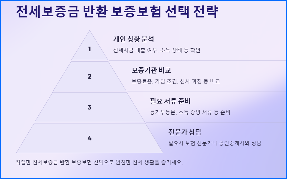 전세보증금 반환 보증보험은 세입자의 권리를 보호하는 중요한 수단입니다. 보증료율만 보면 HF가 가장 유리하지만, 가입 조건과 보증한도 등을 종합적으로 고려해야 합니다. 본인의 상황에 맞는 최적의 보증보험을 선택하여 안전한 전세 생활을 영위하시기 바랍니다.