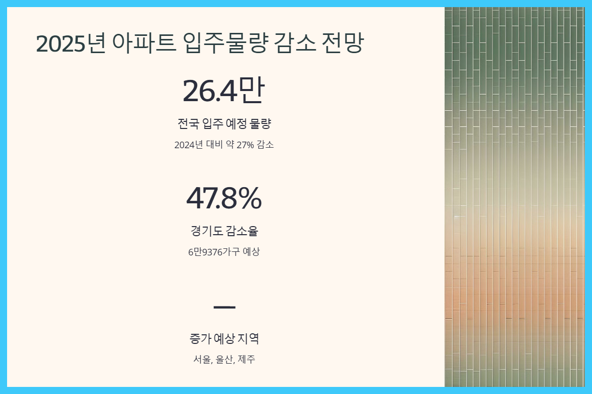 - 경기도: 2024년 대비 4만7565가구(47.8%) 감소한 6만9376가구 예상